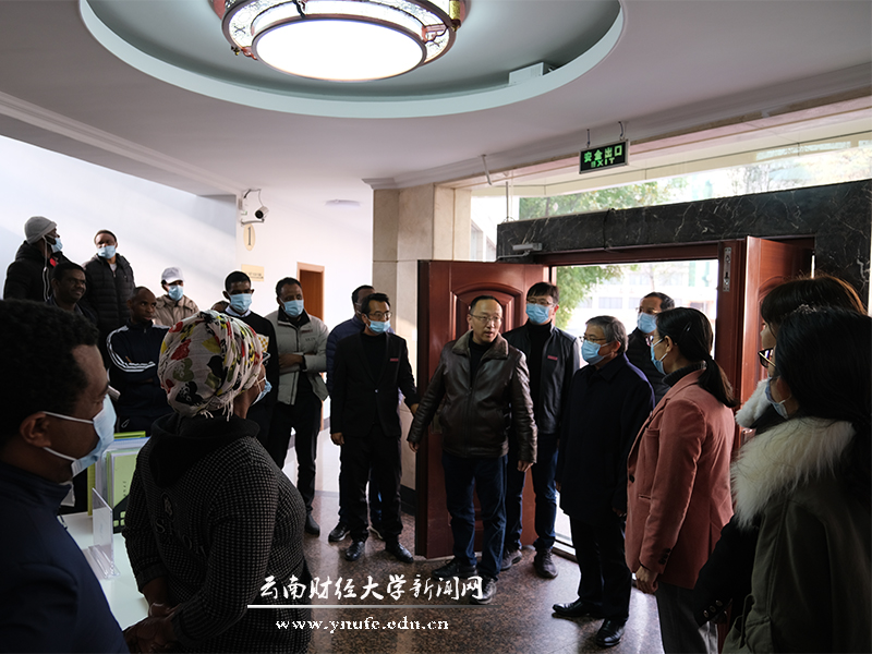 在留学生公寓和涵华苑国际学生公寓,王建颖、伏润民与国际学生亲切交谈,表达了学校对来自不同国家的学生的关怀和慰问,希望他们严格遵守国家和学校的疫情防控规定,也祝愿他们在学校度过一个愉快祥和的春节。