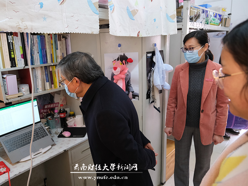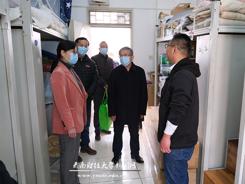 1月29日上午,校党委书记王建颖,党委副书记、校长伏润民,党委副书记桂正华一行到景华苑学生宿舍、留学生公寓等寒假留校学生宿舍看望慰问假期留校学生,表达学校的关心,并送上春节慰问礼品。