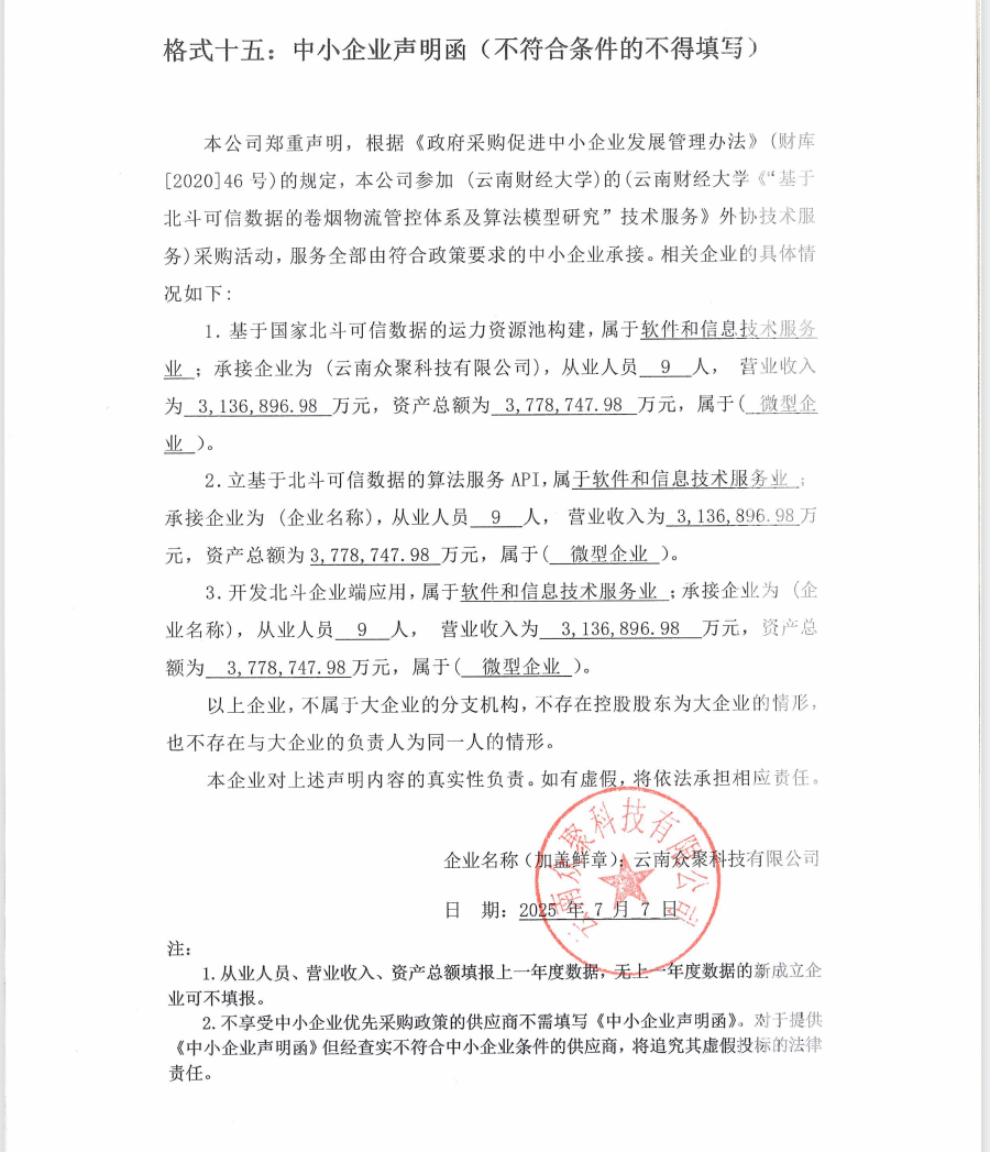 供应商名称:云南众聚科技有限公司