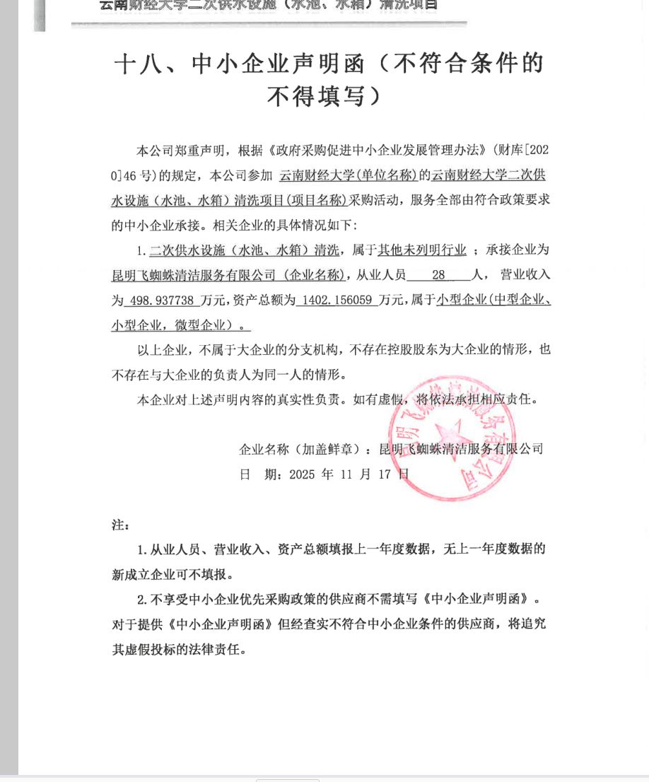 供应商名称:昆明飞蜘蛛清洁服务有限公司