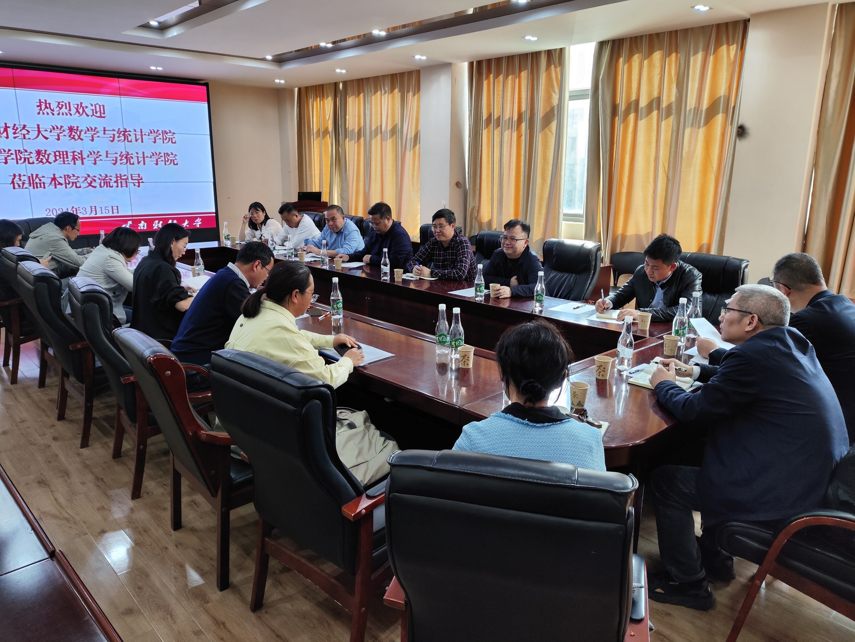 为贯彻落实党中央、国务院关于高校毕业生就业工作的决策部署,千方百计开拓更多就业岗位和机会,深入落实就业工作“一把手”工程,3月15日下午,贵州财经大学数学与统计学院党委书记虞帆一行6人、百色学院数理科学与统计学院院长姚源果一行5人到WilliamHill官网统计与数学学院开展学生就业、实习、合作办学等交流,座谈会由统计与数学学院党委书记杨媛妮主持。