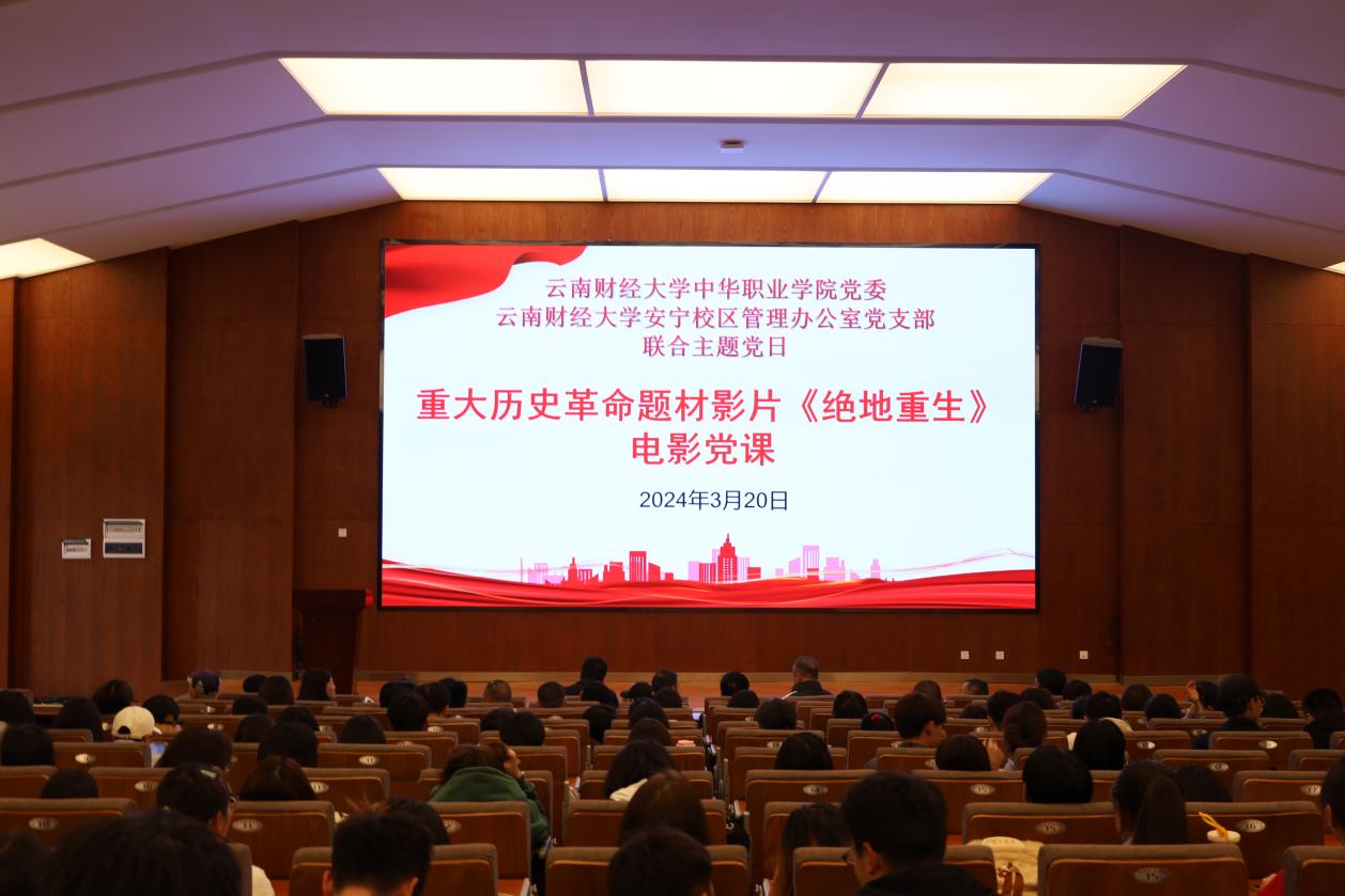 为深入学习贯彻落实习近平总书记考察云南重要讲话精神,传承红色基因,赓续红色血脉,3月20日,安宁校区管理办公室党支部教师及中华职业学院师生党员、团员青年、学生骨干共同观看了重大历史题材电影《绝地重生》,通过观影重温革命历史,感悟长征精神,汲取奋进力量。