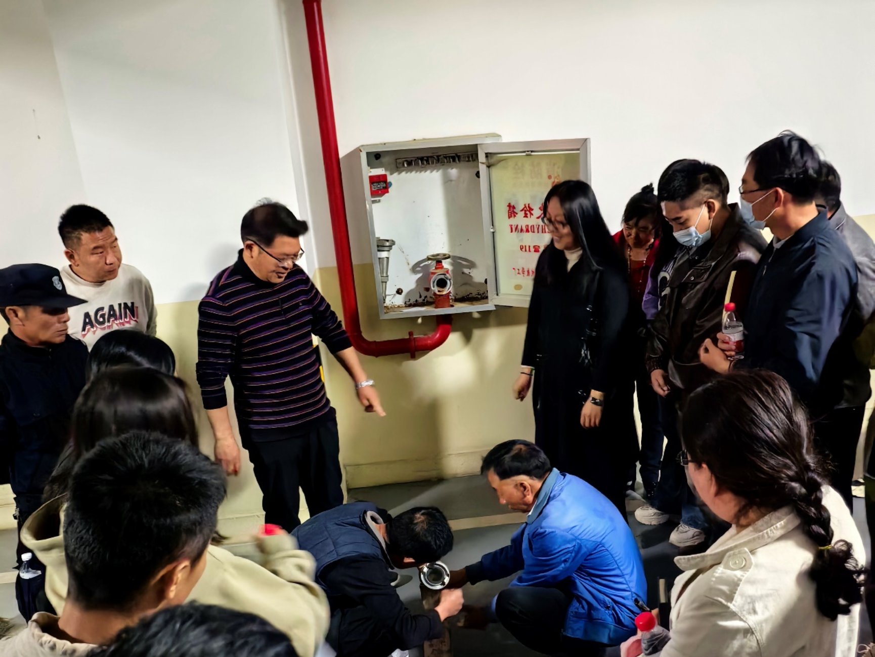 演练阶段,后勤产业集团质量安全办公室组织参训人员进行消防实操演练,现场指导消防栓及干粉灭火器的使用技巧和注意事项。
