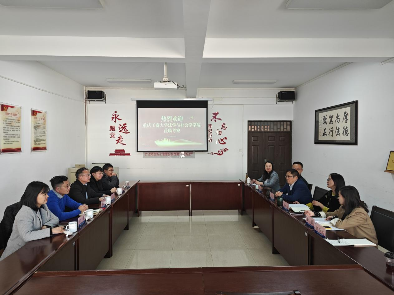 3月6日,重庆工商大学法学与社会学学院副院长侯明喜带队到法政学院交流,法政学院院长石现明、院党委副书记张吟竹、副院长简琨益接待了来访一行并举行座谈交流。