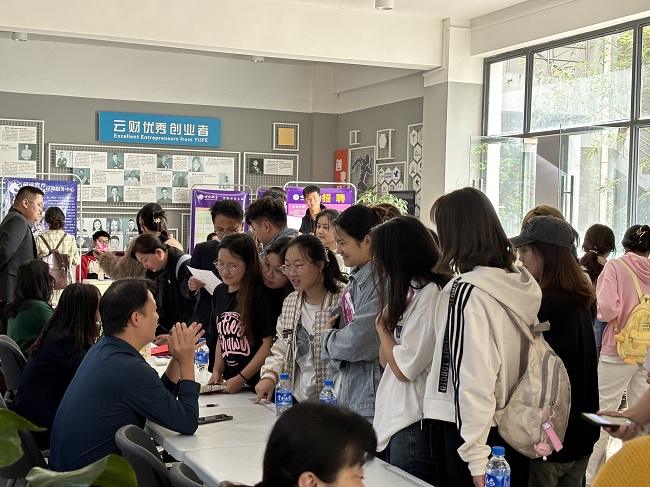 为深入贯彻落实党中央、国务院和省委、省政府关于高校毕业生就业工作的决策部署,推动毕业生高质量就业,3月29日,国际语言文化学院在学校龙泉路校区北院众创空间一楼大厅承办学校“周五‘职通车’”专场招聘会,云南合众环境科技有限公司、昆明寰十凌科技有限公司、云南庚之焱商贸有限责任公司等27家企事业单位参加。