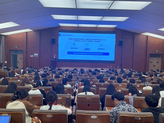 昆明市人力资源和社会保障局王淮老师以“大学生就业形势与政策分析”为题主讲。她分析了高校毕业生就业总体形势,对昆明市重点发展产业进行了详细介绍,并对相关就业和创业政策作解析。王淮结合具体案例,深入剖析了政策对就业创业的重要促进作用,给出实用性较强的就业创业建议。