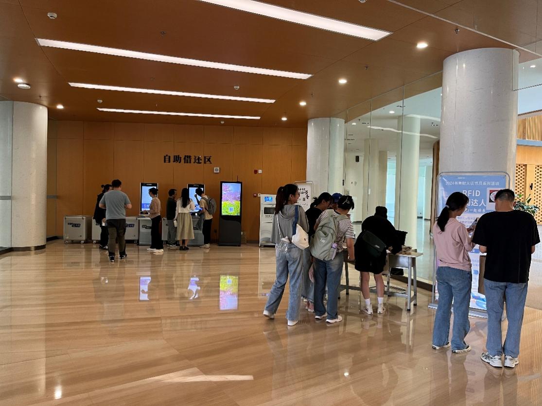 在安宁校区,图书馆举办了RFID借书抽奖活动。读者通过RFID自助设备完成图书借阅,即可参与现场抽奖,领取小礼品。活动期间有105名读者完成424册次图书借阅,并获得了读书日活动小礼品。活动过程中,图书馆工作人员为读者详细介绍和演示了设备和系统的操作,让读者进一步熟悉自助借还设备的各项服务功能,让读者进一步感受到智能化设备在图书馆的运用和发展。