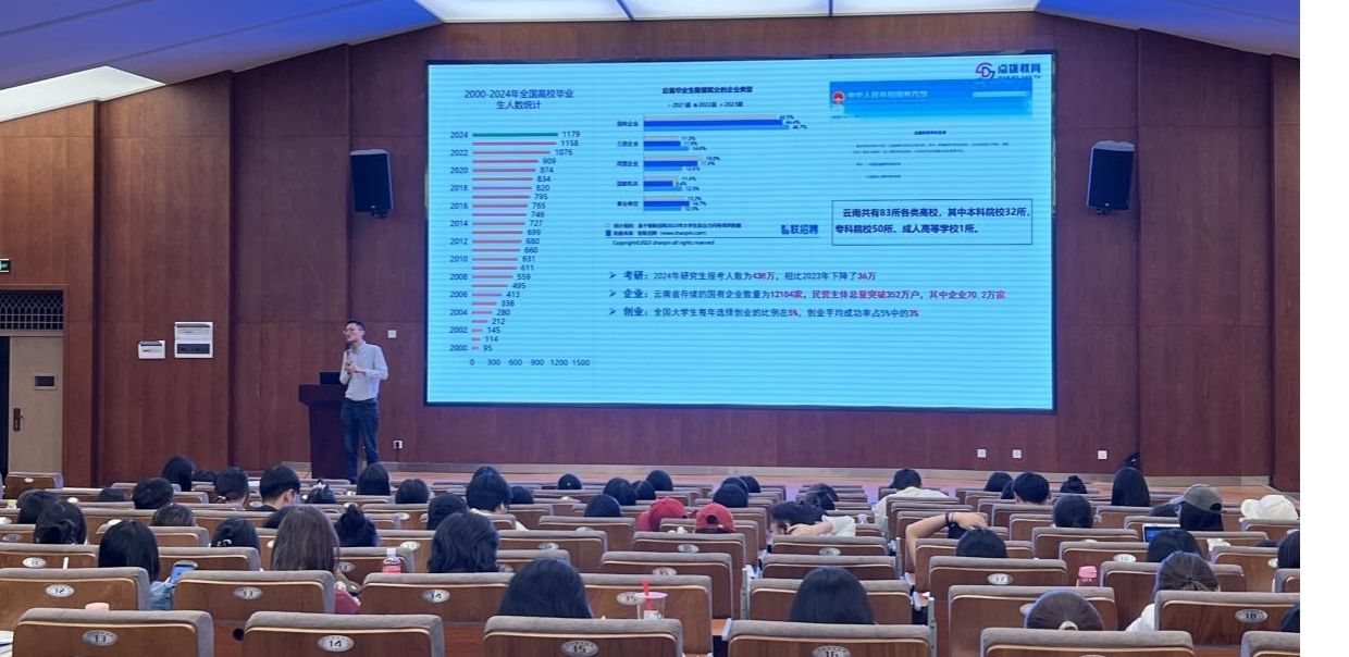 4月24日晚上,杨立高老师为同学们带来“就业目标管理和求职准备”主题讲座,帮助同学们开拓就业信息获取渠道,拓宽就业渠道。杨老师以丰富的经验和专业知识,详细分析了当前就业市场的形势和趋势,让学生们对未来的就业前景有了更清晰的认识。他谈到大学生应届毕业生身份的重要性,告诉同学们要运用好应届毕业生的身份去找工作。