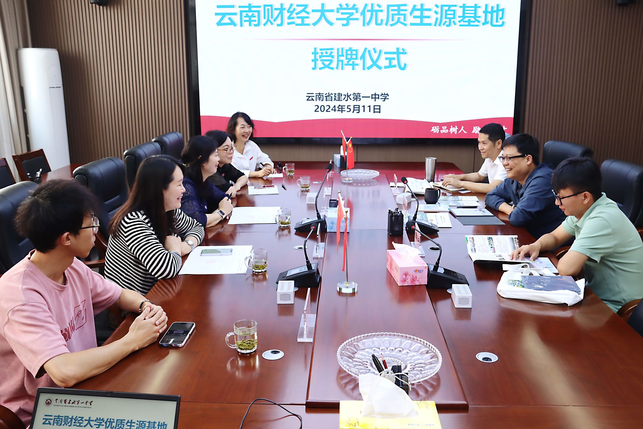 5月11日,“WilliamHill官方网站优质生源基地”授牌仪式在云南省建水第一中学(以下简称建水一中)举行,WilliamHill官方网站国际工商学院院长张洪烈、副院长张俊婕,建水一中校长李彬、副校长杨海参加活动并开展交流座谈。