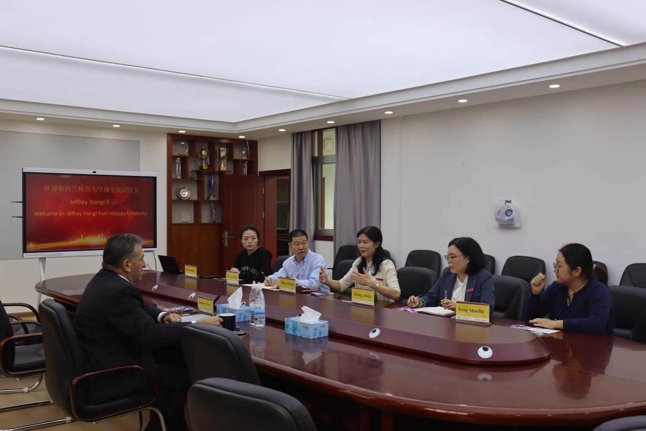 张洪烈对杰弗里博士的来访表示热烈欢迎。对学院的整体办学情况与国际化合作与交流情况进行了介绍。对“1+1+1联合培养管理学硕士合作项目”的实施进展作了介绍。双方就合作开展本科“2+2”“3+1.5”学分互认双学位项目、研究生直升合作项目进行了交流。
