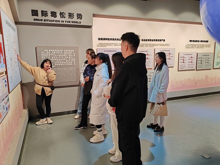 “什么是毒品?”“毒品的危害有哪些?”以及“抵制毒品的做法是什么?”……云南警官学院禁毒学院陈蕾老师用一个个问题及相关图文,生动形象地向师生们介绍了禁毒知识、毒品的危害以及防范毒品的方法等相关内容。通过对诱惑之花、罪恶之果、止殇之剑、远航之路四个主题馆的参观,近距离观察了各类实物陈列,学习了各类涉毒违法犯罪的反面案例,了解了国家及地方政府对禁毒工作的各项政策,缅怀了壮烈牺牲的缉毒警察们,让师生们更加深刻地认识到毒品对人生的摧残、对家庭的毁灭以及对社会的危害。