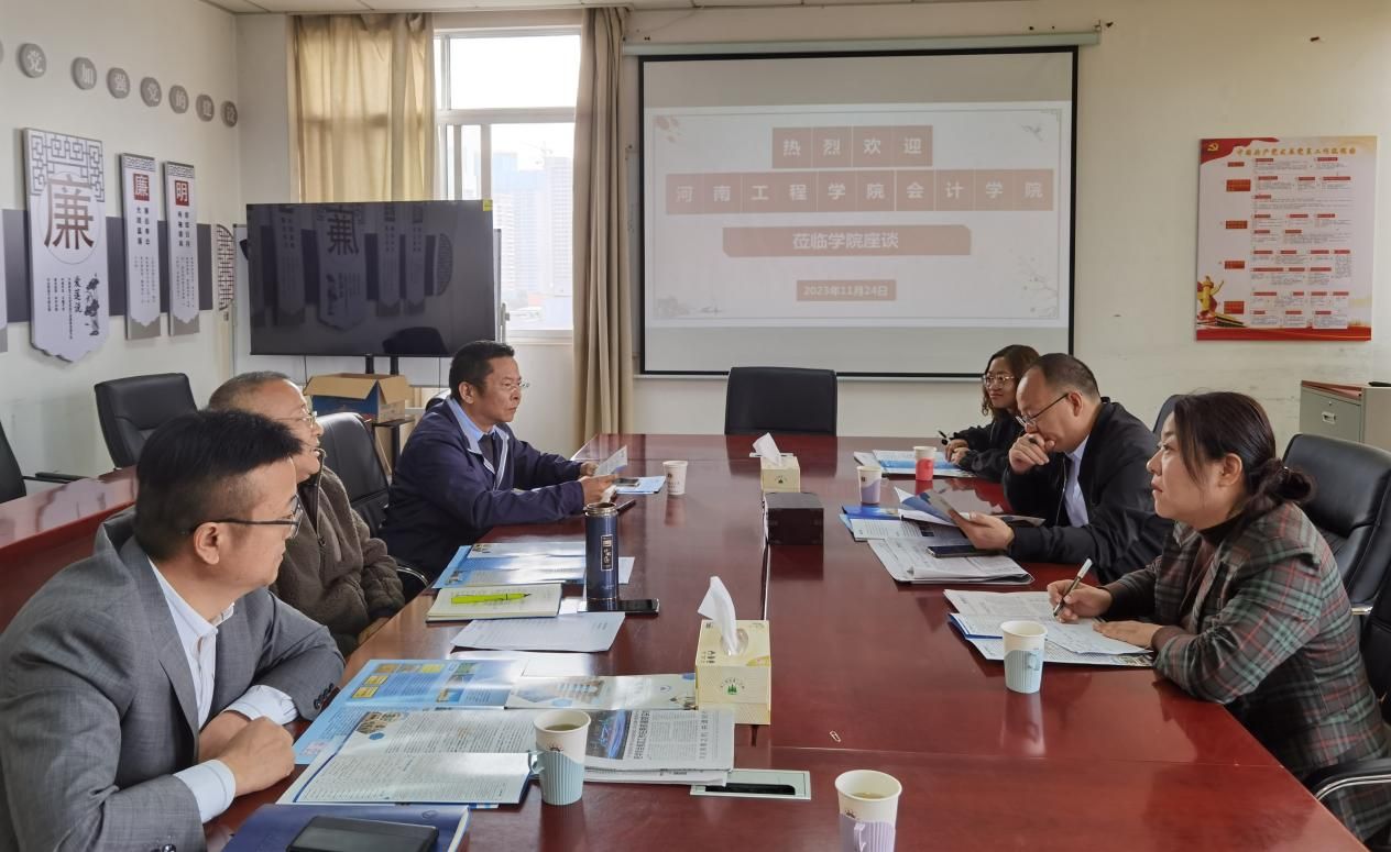 11月24日,河南工程学院会计学院党委副书记张维、财务管理系主任黄永华、党政办主任张淑靖一行3人到会计学院调研交流。会计学院党委书记李丽忠、中国少数民族财会博物馆副馆长余根亚、会计学院副院长吴昊旻等参加调研交流,座谈会由李丽忠主持。
