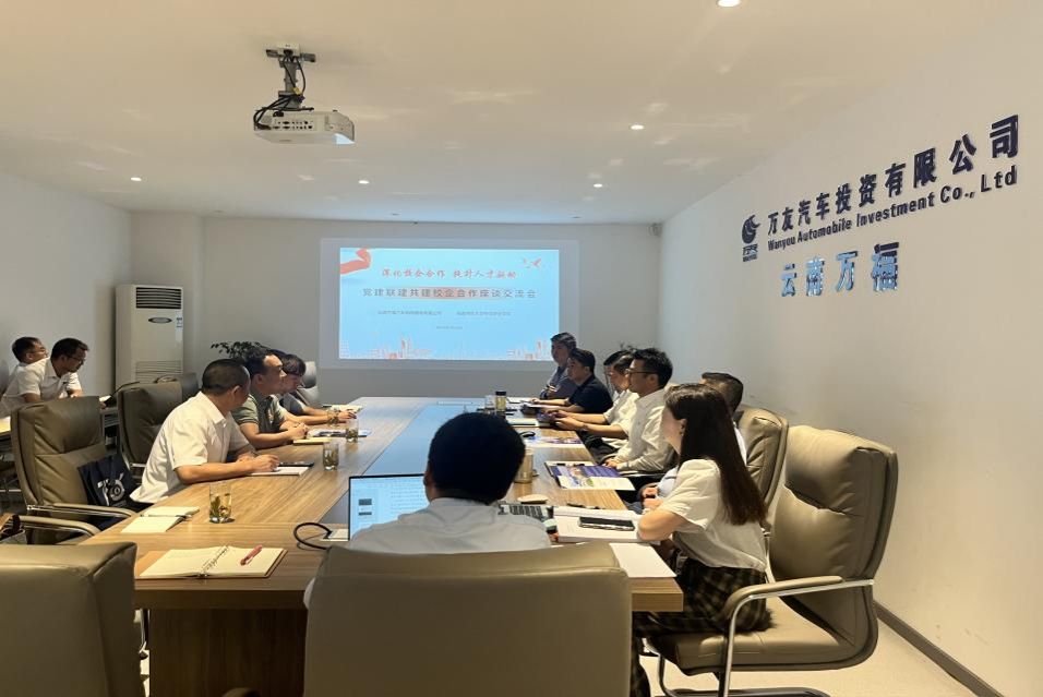 为全面深化校企合作,促进毕业生高质量就业,5月28日上午,中华职业学院党委书记保伟一行赴云南万福汽车销售服务有限公司(以下简称“云南万福”)开展校企党建联建共建暨访企拓岗交流座谈,向企业面对面推介毕业生。双方以“深化校企合作,提升人才驱动”为主题开展座谈交流。