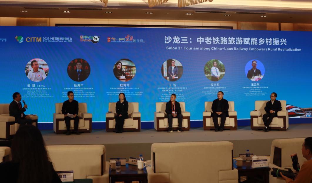 旅游与酒店管理学院院长晏雄主持“中老铁路旅游赋能乡村振兴”的圆桌论坛。副院长谢洪忠在“2023中国—东盟旅游投资研讨会”中作了《共建中国—东盟旅游投资合作共同体,更好发挥云南作用》的主题讲座。