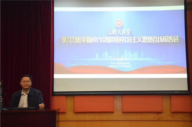 10月27日,云岭大讲堂系列讲座之《从党的二十大深刻领悟“两个确立”的决定性意义》在学校锺正山美术馆一楼报告厅举行。讲座由国际语言文化学院和科学技术处联合主办,省委宣讲团成员、省委党史研究室主任杨林兴受邀主讲,国际语言文化学院党委副书记俞虹主持讲座。