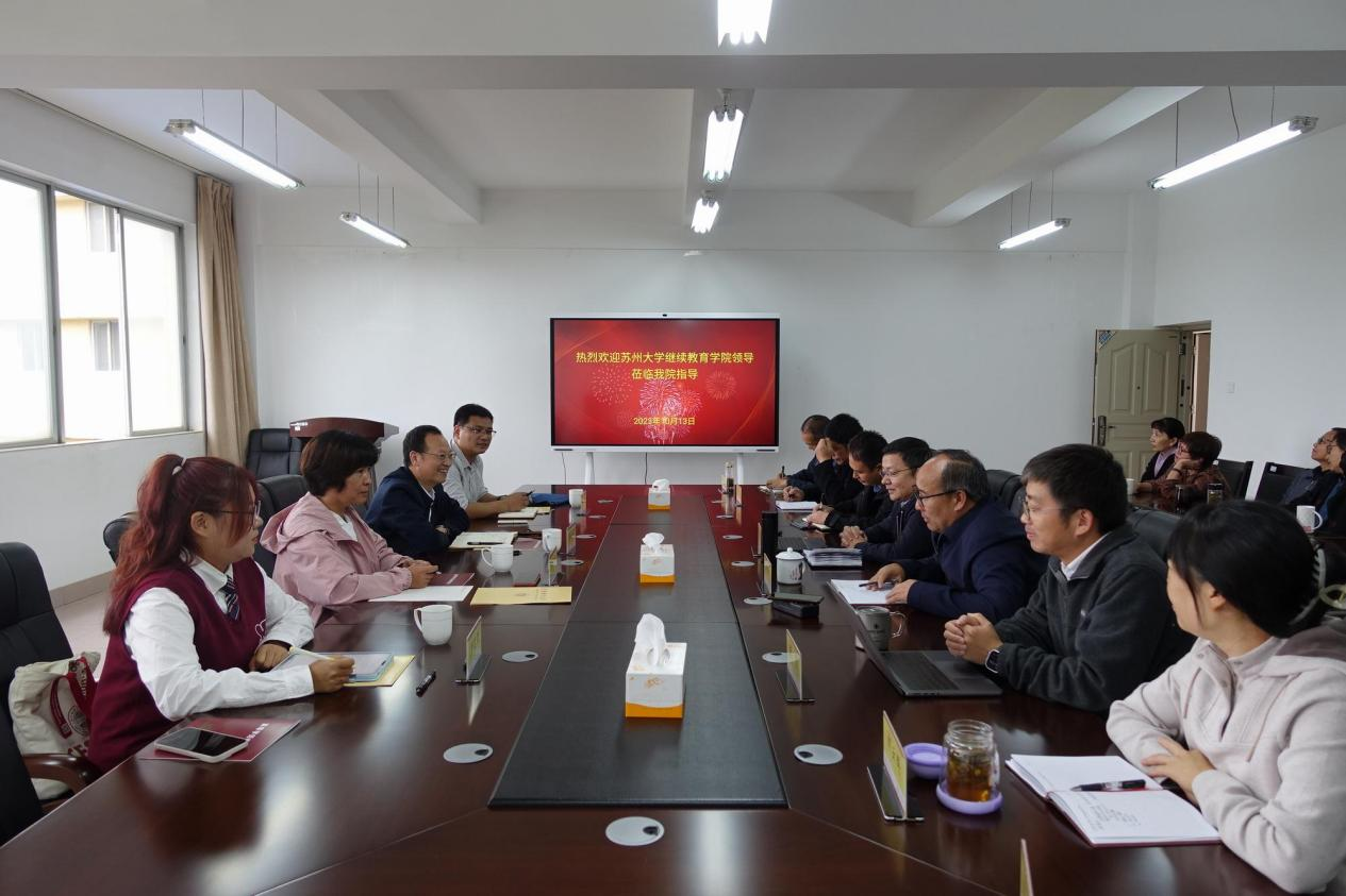 10月13日下午,苏州大学继续教育学院院长缪世林、副院长董娜、培训部主任陈耀、事业发展部媒体与推广中心主任查盈章一行4人到WilliamHill官网继续教育学院调研交流。副校长颜明会见了调研组。继续教育学院党支部书记金国兴、院长姚建峰、副院长张翼,资产经营公司行政人事部主任吴宁江,以及学院全体教职工参加调研座谈。