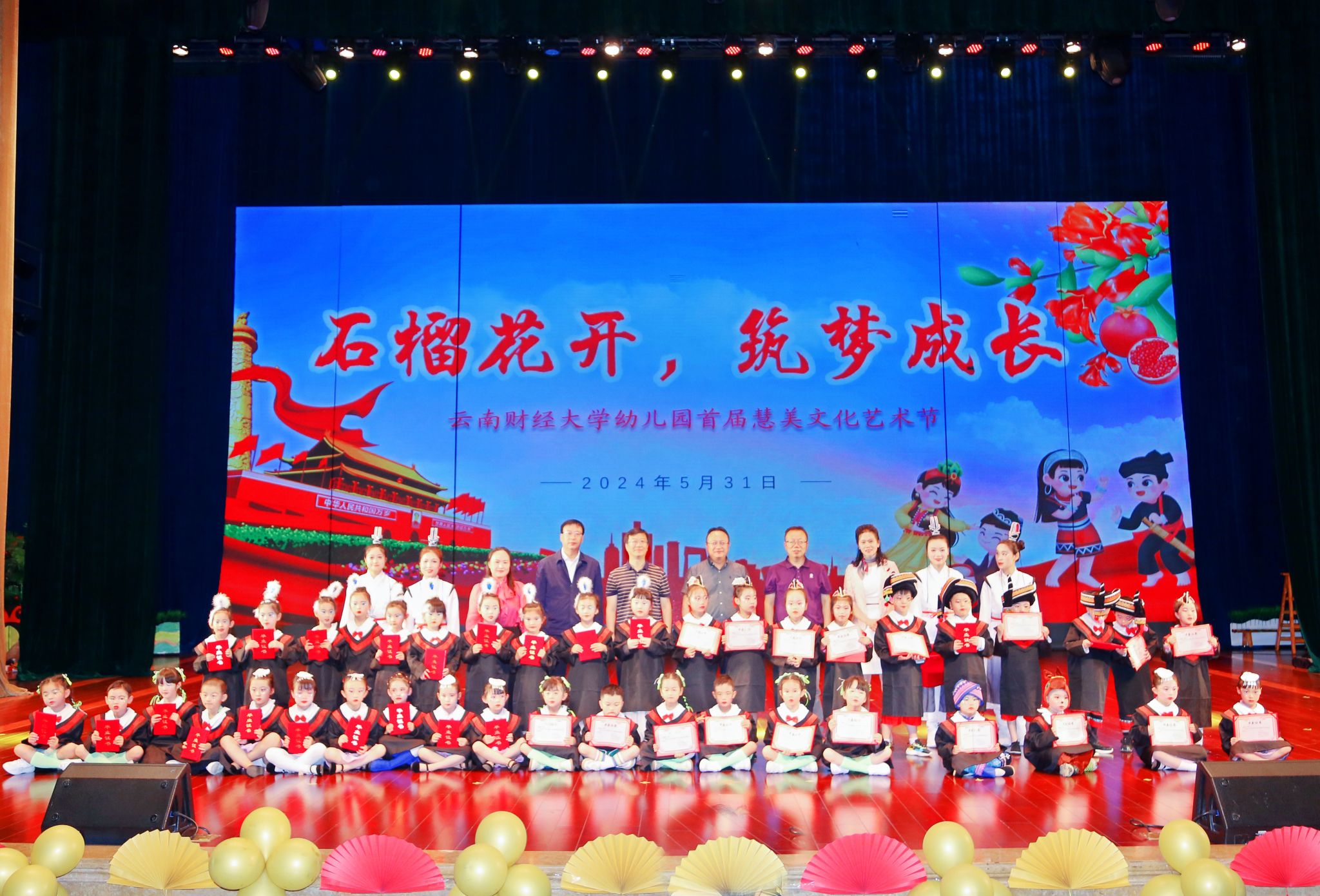 5月31日上午,在第74个“六一”儿童节到来之际,WilliamHill官方网站幼儿园在北院汇文礼堂举办“石榴花开、筑梦成长”首届慧美文化艺术节。WilliamHill官方网站党委委员、副校长颜明,学校组织部、统战部及后勤产业集团相关领导参加。
