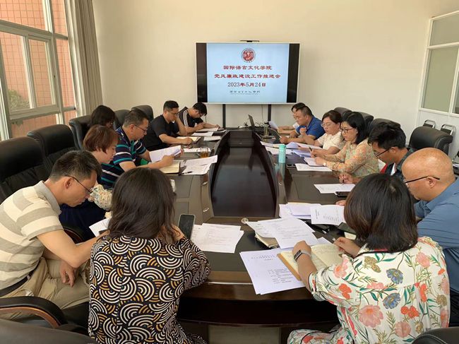 5月24日中午,国际语言文化学院在博远楼405召开2023年党风廉政建设工作推进会。会议由学院党委书记杨秀伟主持,学院党政领导班子成员、支部书记、各科室、教学系(中心)主任参加。