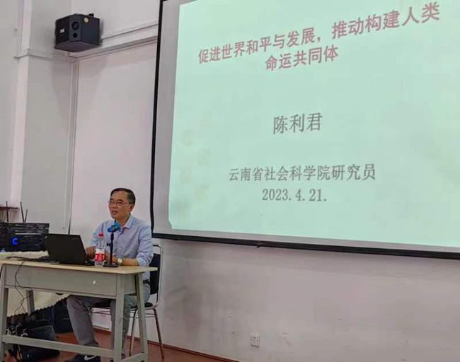 4月21日,云岭大讲堂系列讲座之“促进世界和平与发展,推动构建人类命运共同体”讲座在WilliamHill官网举行。讲座由国际语言文化学院和科学技术处联合主办,云南省社会科学院副院长、二级研究员陈利君主讲,国际语言文化学院党委副书记俞虹主持。