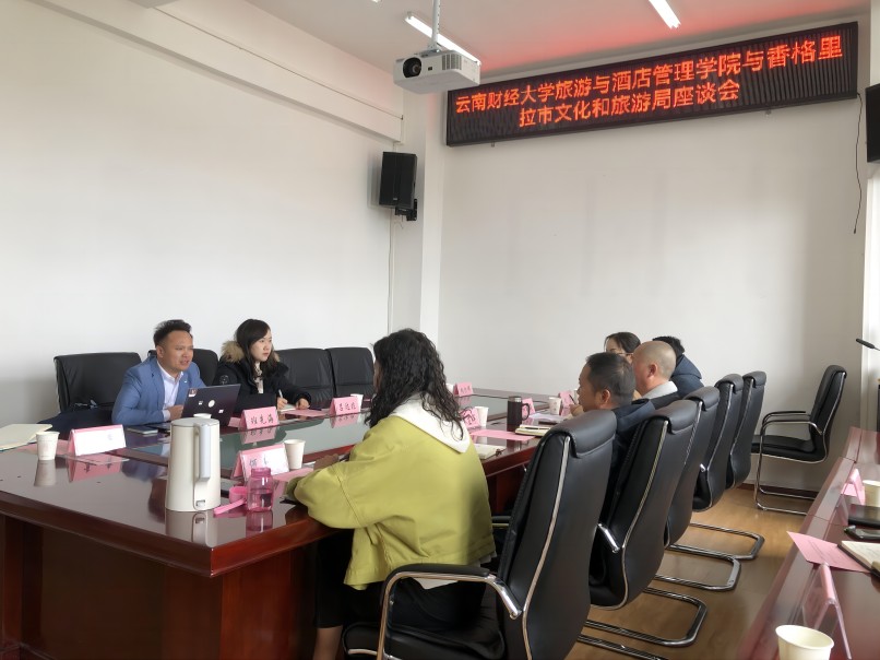 为回访香格里拉市文化与旅游局并洽谈文旅培训项目,4月28日,旅游与酒店管理学院参加由香格里拉市文化和旅游局主办的合作洽谈会。香格里拉市文旅局副局长李应军、市工信局副局长赵勇、市图书馆馆长和丽娟、文化遗产管理副局长王国新、市文化馆馆长扎巴云登,旅游与酒店管理学院学术与研究生教育中心主任班先海、学院讲师吕达非参加座谈。