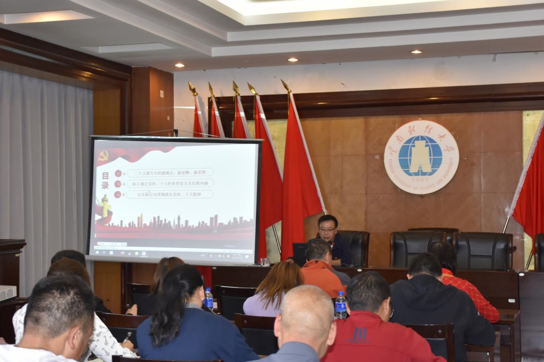 徐良金作会议总结并提出工作要求。一是学习贯彻党的二十大精神要结合主题教育,坚持读原著、学原文、悟原理、知原义,切实以习近平新时代中国特色社会主义思想武装头脑、指导实践、推动工作;二是学习贯彻党的二十大精神要真正把自己摆进去、把工作摆进去,围绕学校第五次党代会提出的“1186”战略任务,建强后勤服务保障体系,提升服务质量。
