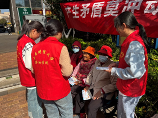 志愿活动通过悬挂横幅、发放宣传彩页和讲解防诈知识的方式进行。一部分志愿者和社区工作人员向居民发放宣传单,普及各类常见的网络诈骗手法。另一部分志愿者手持“防电信诈骗”小册子,为社区老年人耐心讲解防诈知识,并向其讲述身边发生的典型电信网络诈骗案例。在社区工作人员的带领下志愿者们还进行了入户式走访宣传,提醒居民不要轻易透露个人信息,遇到可疑情况及时报警,以保障自身财产安全。