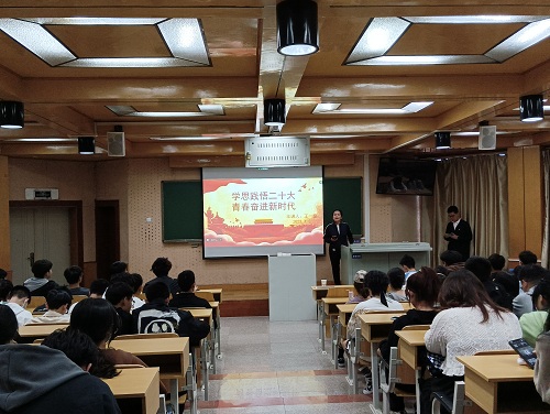 4月2日晚,信息学院在北院卓远楼320阶梯教室开展“学习贯彻党的二十大精神专题宣讲”暨云财宣讲团进班级活动。宣讲团成员、学院党委书记李娟主持活动,宣讲团成员、马克思主义学院在读硕士王一豪主讲,学院2021级、2022级全体本科生参加了宣讲活动。