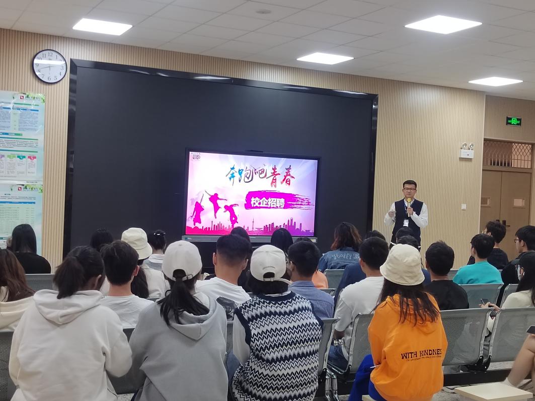 宣讲会结束,6家企业移步修远楼中庭开展专场招聘,毕业生积极与公司人员沟通,投递简历。