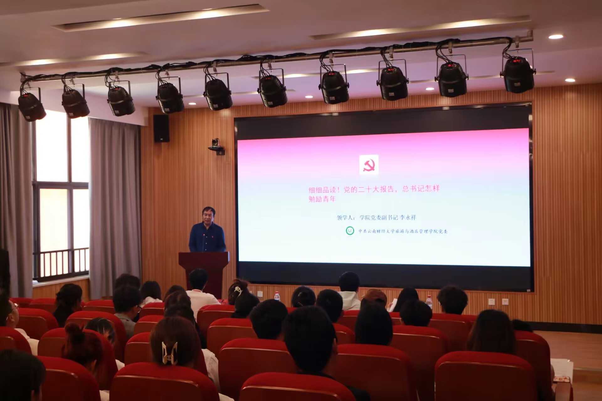 为了深入学习宣传贯彻党的二十大精神,引领广大青年在全面建设社会主义现代化国家中积极贡献力量,3月10日下午,旅游与酒店管理学院在220报告厅组织学生骨干学习党的二十大精神。学院党委副书记李永祥领学,学院团委负责人张海明及各年级50余名学生骨干参加。