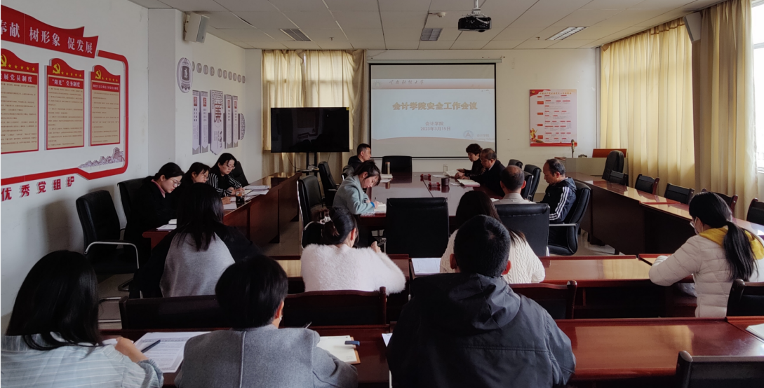 为切实落实云南省教育厅及学校安全工作会议精神,加强学院学生安全工作,3月15日,会计学院在逸夫楼820会议室召开学生安全工作会议。学院院长陈永飞、党委副书记兼纪委书记王涛、副院长刘昌胜及其他学工领导小组成员参加会议,会议由学生管理科科长李淑兰主持。