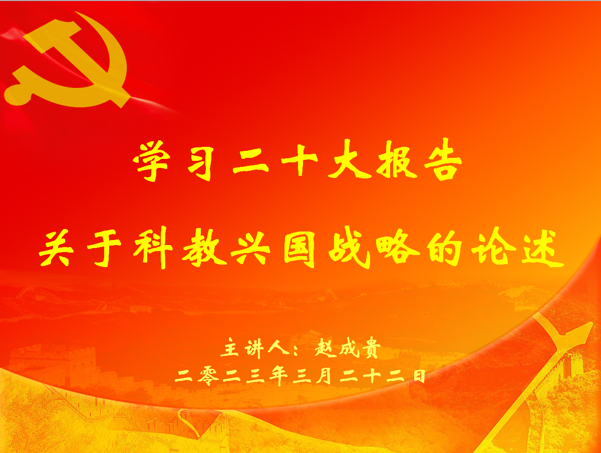 赵成贵以学习二十大报告关于科教兴国战略的论述为主题领学,围绕党的二十大报告将教育、科技、人才“三位一体”统筹安排、一体部署展开讲解,带领大家认真学习了科教兴国战略在新时代的科学内涵和使命任务。