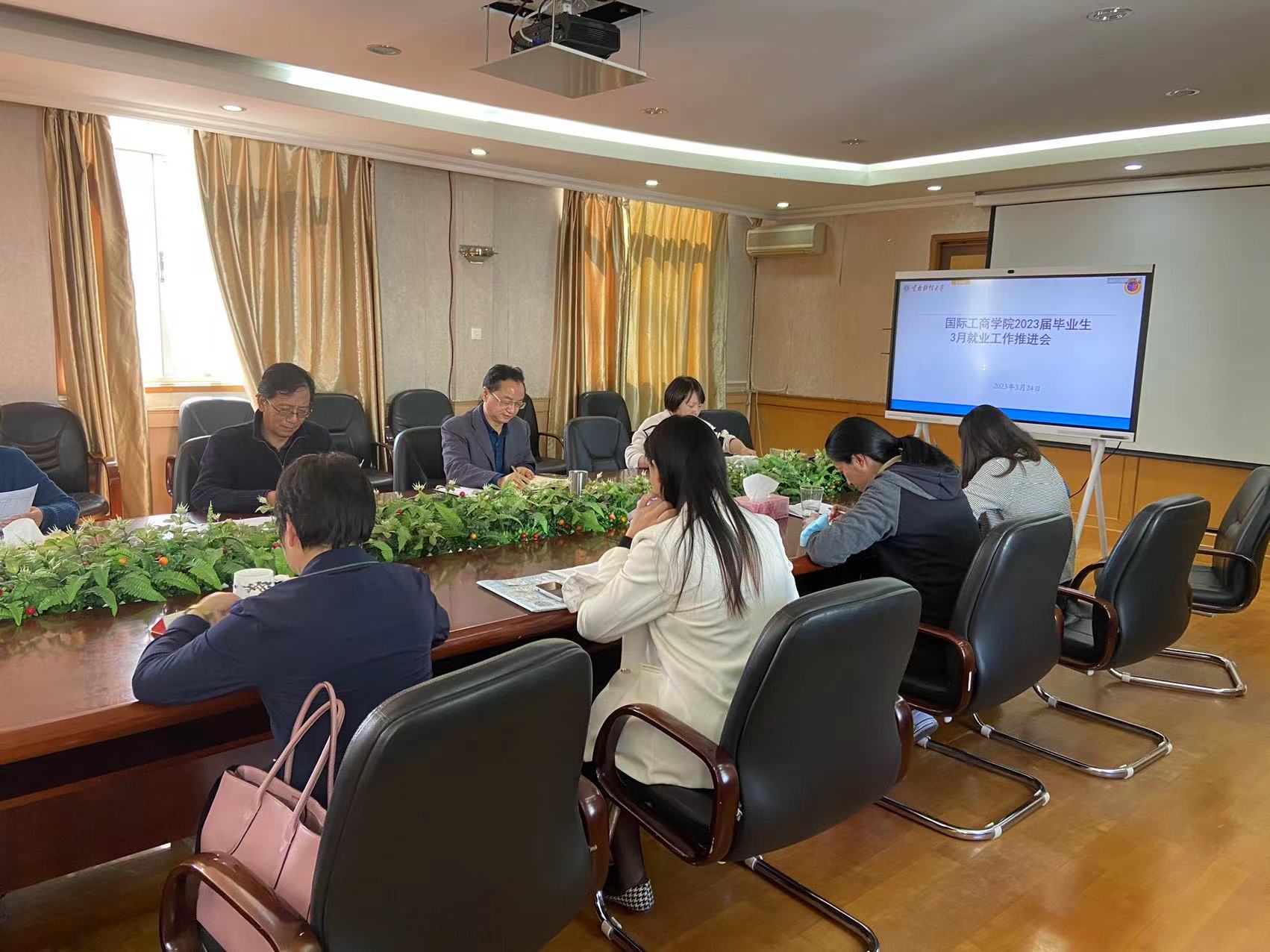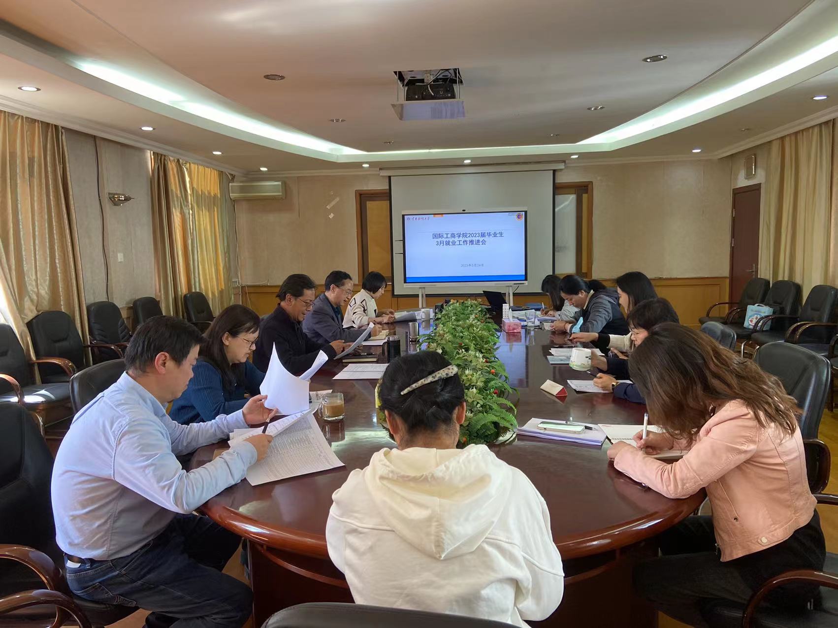为贯彻落实党中央、国务院“稳就业”“保就业”决策部署,全力促进2023届毕业生顺利就业、尽早就业,3月24日下午,国际工商学院在办公楼三楼会议室召开2023届毕业生就业创业工作推进会。学院党委书记林浩,院长王荣党,副院长尹豪、杨樱,党委副书记王晶及学生管理科、毕业班班主任参加会议,会议由王晶主持。