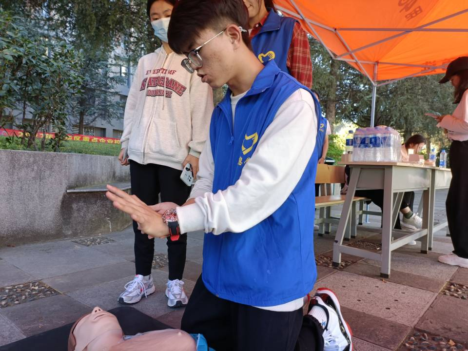 为了让更多同学了解急救知识,在遇到特殊情况时能及时采取处理措施,11月11日,信息学院在北院梧桐餐厅前开展了急救培训活动。本次活动共有24名学院青协志愿者及90名同学参加。