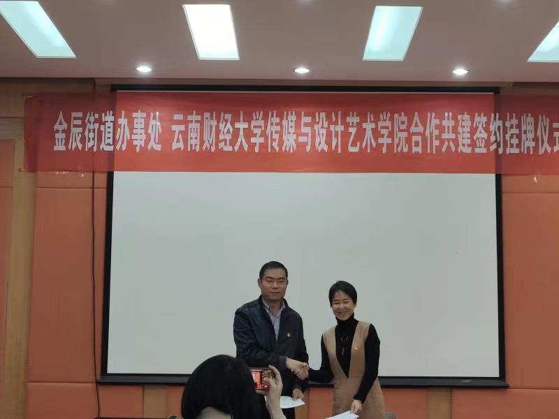 11月16日,传媒与设计艺术学院与金辰街道办事处在锺正山美术馆举行合作共建签约挂牌仪式暨联合主题党日活动。学院党委副书记杨青山主持签约式,学院党委书记李丽忠、院长袁洪、副院长崔木扬以及20余员师生代表和金辰街道办事处主任彭福州 、宣传委员胡红泉、组织委员谭媛以及机关党支部、青年人才党支部20余名党员参会。