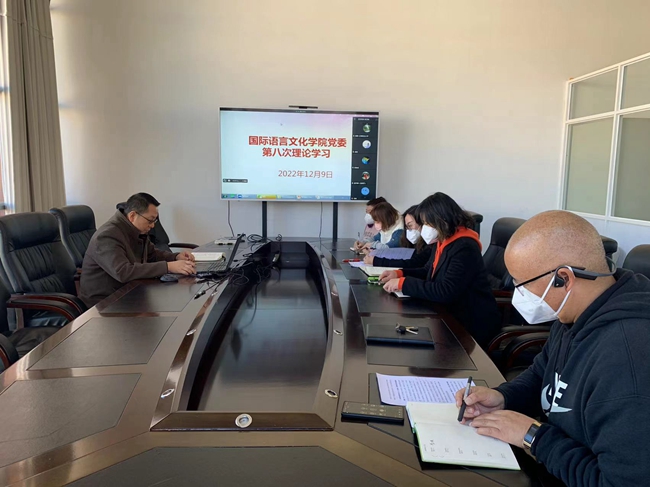 12月9日下午,国际语言文化学院以“全面准确学习领会党的二十大精神”为主题开展党委理论学习中心组专题学习,学院党委书记杨秀伟主持,学院领导、党委委员、支部书记、各科室负责人参加学习。专题学习会议线上线下同步开展。