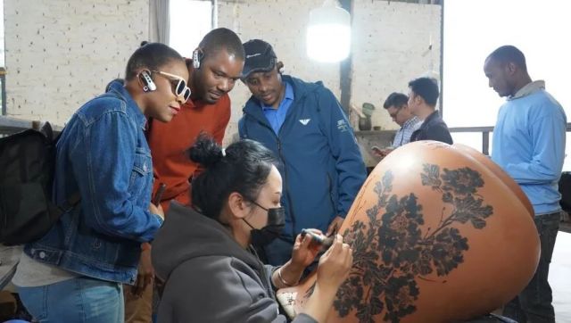 国际学生一行重点调研了建水的紫陶文化产业,参观了建水紫陶文化产业园区、建水紫陶博物馆、艺术陶创意基地和建水紫陶数字赋能中心等地,并到红河州民族师范学校走访了红河流域傣陶发展研究中心和建水青花研究所。吴白雨、谢恒、田静等紫陶专家为国际学生们开展了关于紫陶的三个讲座,国际学生们还亲自动手体验紫陶制作的拉坯和绘画等实践环节,并得到了“轻工大国工匠”、建水紫陶烧制技艺传承人谭知凡老师的亲自指导。