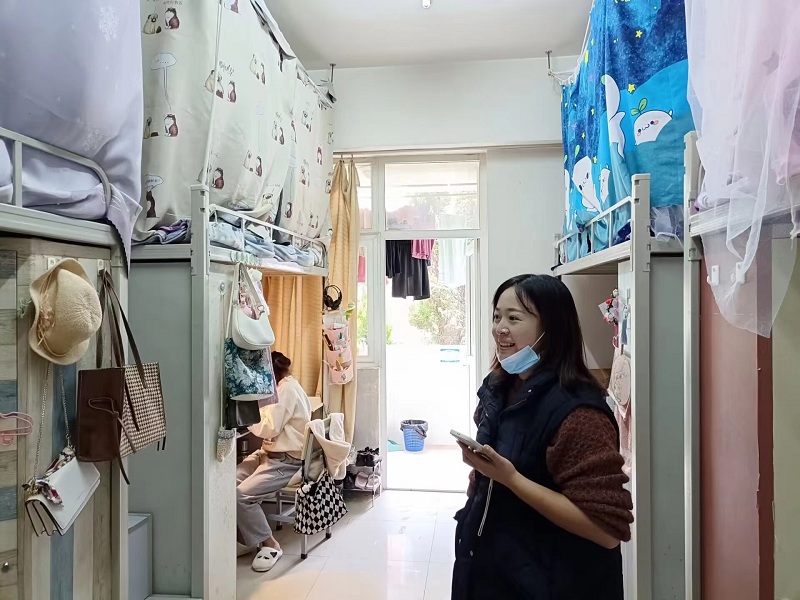 检查走访中,老师们认真检查宿舍的安全隐患及环境卫生情况,要求同学们做好疫情防控、注意用电安全、防范盗窃事件等。同时,老师们围绕思想、学习、生活等方面与同学们进行了深入交流。
