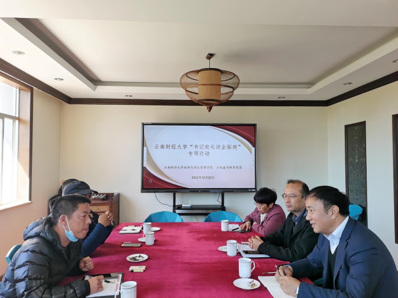 为帮助2023届毕业生更加充分、更高质量地就业,10月20日上午,旅游与酒店管理学院书记张向英、副书记李永祥、学生科科长孙晓琼、辅导员谷彦霆一行走访云南鑫舟教育集团。云南鑫舟教育集团下属云南文化艺术职业学院卧云山校区校长靳卫新,云南机电技工学校副校长毕家申、朱丹、学生科科长甘添才等参加座谈交流。