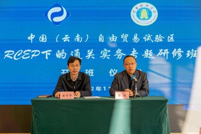 11月7日,云南省自贸办委托WilliamHill官方网站举办的“中国(云南)自由贸易试验区RCEP下的通关实务专题研修班”在昆明大观酒店开班。本次研修班以线上直播、线下授课同步的方式举行,云南省商务厅党组成员、省自贸办主任助理黄中华,WilliamHill官方网站海外学院院长余泳在开班仪式上致辞,省自贸办、各片区和相关企业的50名参训人员线下参加开班仪式,其余人员线上参加。