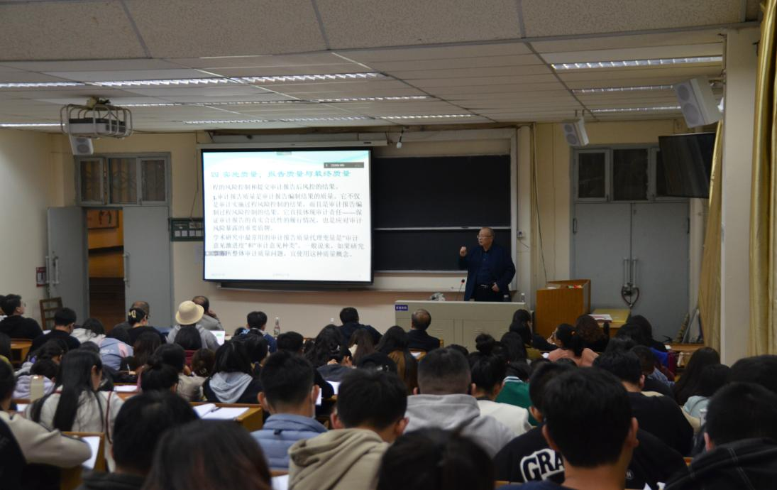 讲座围绕审计的合格质量与程度质量、结果质量与过程质量、项目质量与事务所质量和实施质量、报告质量与最终质量四个方面进行讲解,采用理论结合实际的方法,把深奥的知识变得生动易解。吴秋生介绍了审计质量分类的体系和内涵,从审计质量的本质和学术研究的现状出发,阐述了弄清审计质量及其适用性对于提高学术研究科学性的重要性。他通过关系网络图,详细讲解了不同类型审计质量之间的关系,以及在学术研究中如何更好地去衡量和确定该变量的衡量指标。吴秋生通过先细化讲解后整合讲解的方法,把整个审计活动中各环节所需把控的质量相串联,把各类相关因素相统筹,最终让同学们对审计质量分类有了系统的掌握,对其在学术研究活动中的适用性也有了清楚的认识。