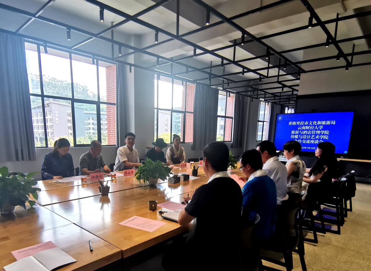 旅游与酒店管理学院院长晏雄、传媒与设计艺术学院院长袁洪及相关专业教师围绕推动双方合作及加快香格里拉市旅游品牌形象建设提出意见建议。袁洪表示,传媒与设计艺术学院期待与香格里拉市文化和旅游局展开深度合作,期待从文化上深度挖掘,发挥文化产业研究及创意设计优势,助力香格里拉市旅游产业发展和乡村振兴。