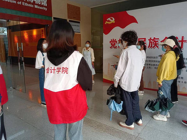 为避免人群集中,96位新生被分为三支队伍,每支队伍由4名学长学姐作为志愿讲解员,带领新生错峰熟悉校园。新生们在学长学姐的引导下在逸夫楼楼下集合出发,参观了校医院、海棠餐厅、行知楼、致远球场、田径场、图书馆、云南财会博物馆等多个校园地点。其中,财会博物馆作为本次活动的一大特色,同学们在博物馆领略到了少数民族财会文化的同时也把经济管理人才的立身之本放入心中,坚持准则,勤奋学习。