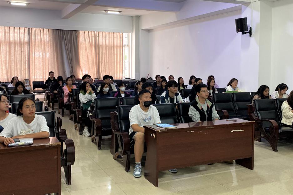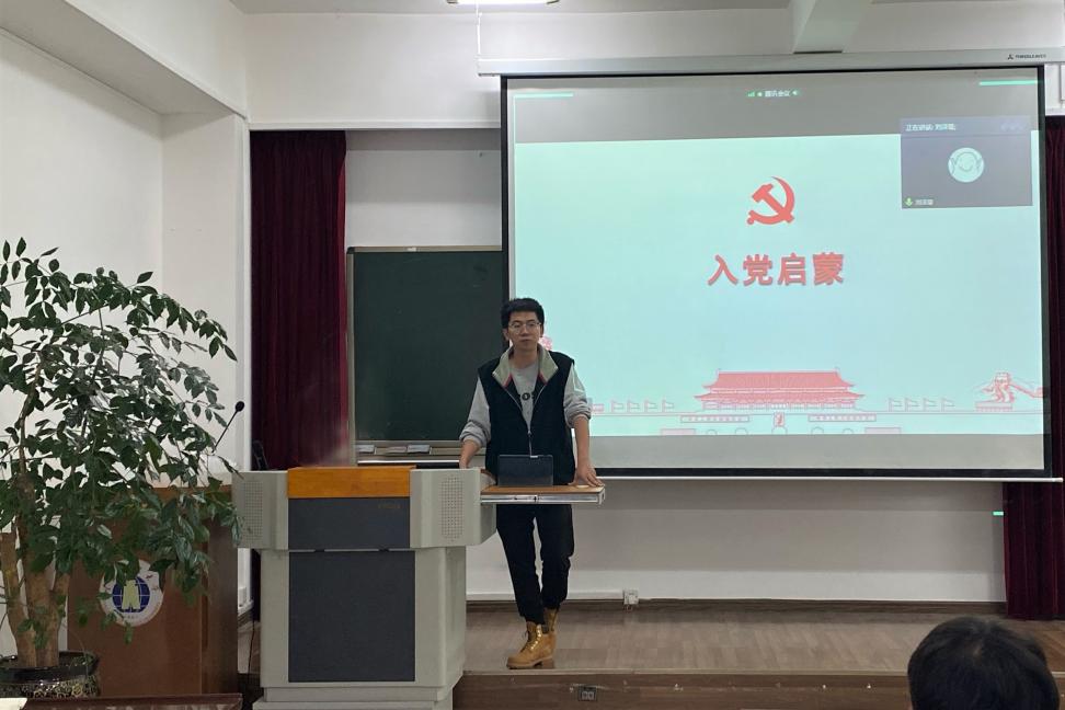 杨梦源向参会同学系统介绍了发展党员的各个步骤,着重强调各个关键节点的流程,详细介绍了入党条件及入党申请书的撰写要点。同时,他为同学们介绍了学院党建工作的基本情况并解答同学们的疑惑。