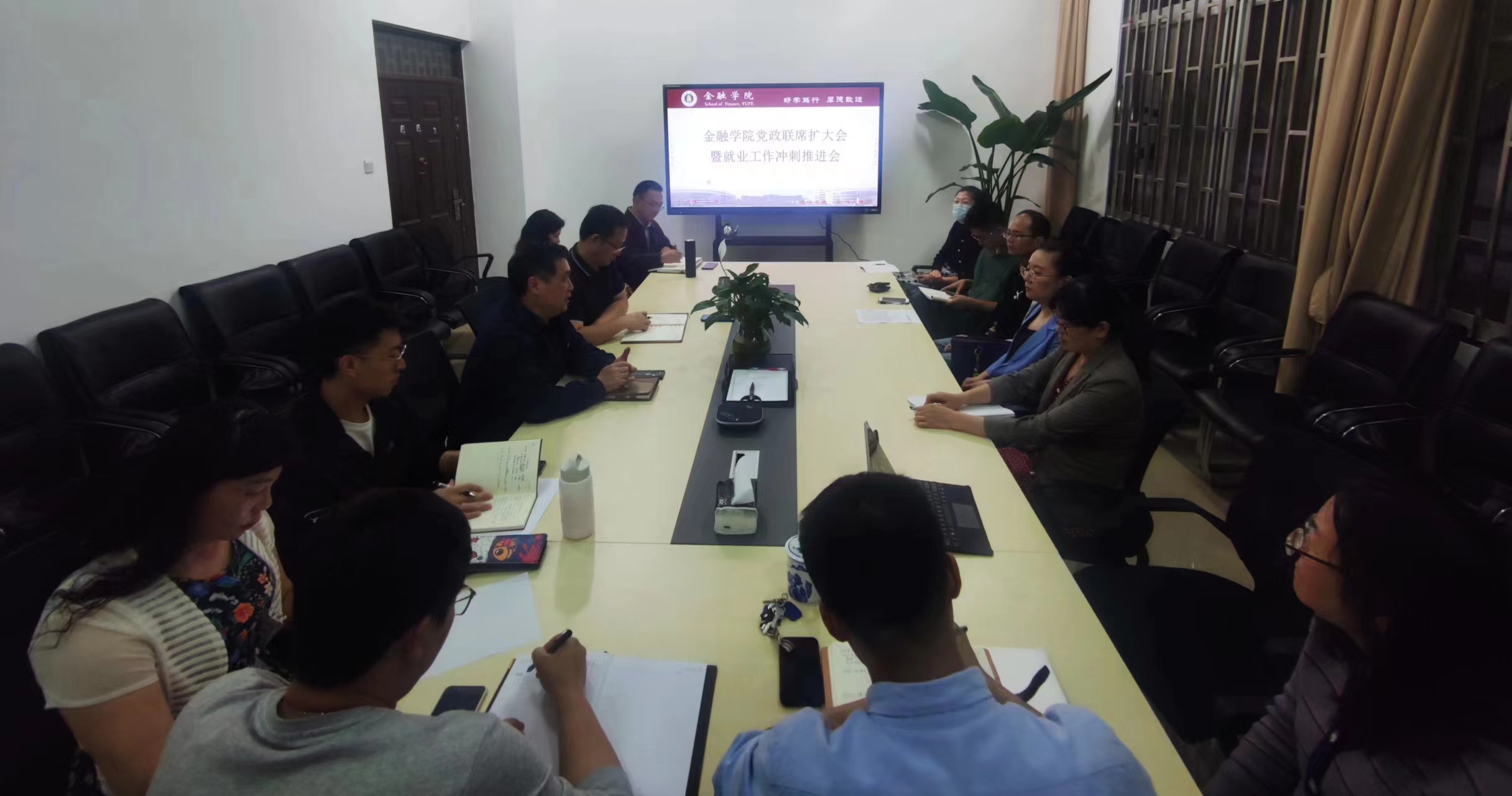 6月18日晚上,金融学院在博远楼115会议室召开金融学院党政联席扩大会暨毕业生去向落实工作冲刺推进会。学院全体中层干部、系主任和毕业班班主任参会。