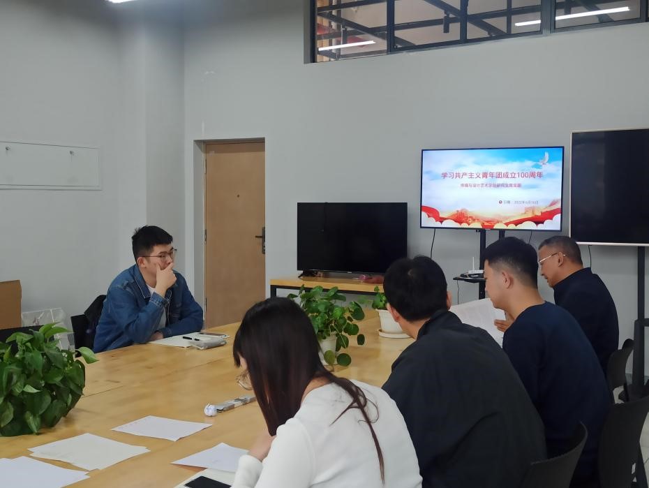 6月16日,传媒与设计艺术学院研究生党支部举行主题党日活动,深入学习贯彻习近平总书记在庆祝中国共产主义青年团成立100周年大会上的重要讲话精神。会议采取集体研学的方式,由党支部副书记林鑫宇主持,学院党委书记李丽忠、支部6名党员及25名入党积极分子参会。