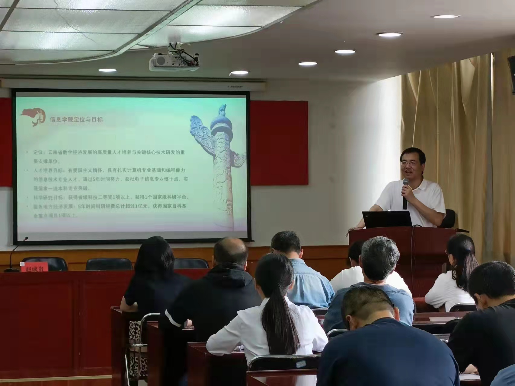 7月4日下午,信息学院在卓远楼403会议室开展教职工集中理论学习。会议由学院办公室主任张涛主持,院长余益民主讲,学院全体教职工及学生党员代表参加学习。