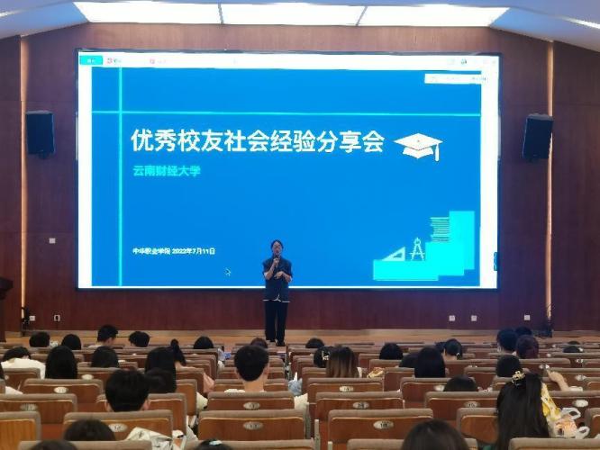 7月11日晚上,中华职业学院在安宁校区鹏云楼101报告厅举办优秀校友求职经验分享会。学院2015届汉语言专业毕业生、云南欢囍花艺设计有限责任公司创始人赵富梅,2017届汉语言专业毕业生、昆明摆渡人传媒有限公司创始人朱永龙,2022届旅游管理专业毕业生、碧桂园服务云桂黔区域经理助理杜焘重返校园,就求职应聘、职场发展等问题和2023届毕业生进行交流。