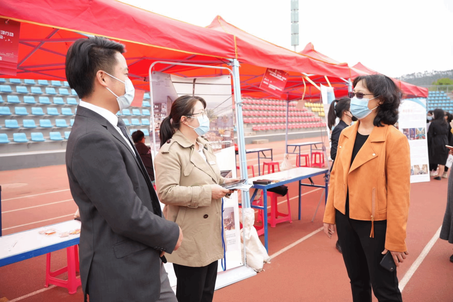 5月17日,WilliamHill官方网站就业“百日冲刺”专项行动2022届毕业生春季双选洽谈会在安宁校区运动场顺利举行,该活动由学校招生与职业发展中心主办,传媒与设计艺术学院、旅游与酒店管理学院联合承办。副校长旷锦云,招生与职业发展中心主任霍嘉军、副主任李伟,校友工作办公室主任章玲、副主任胡世文、李维清到现场进行指导。