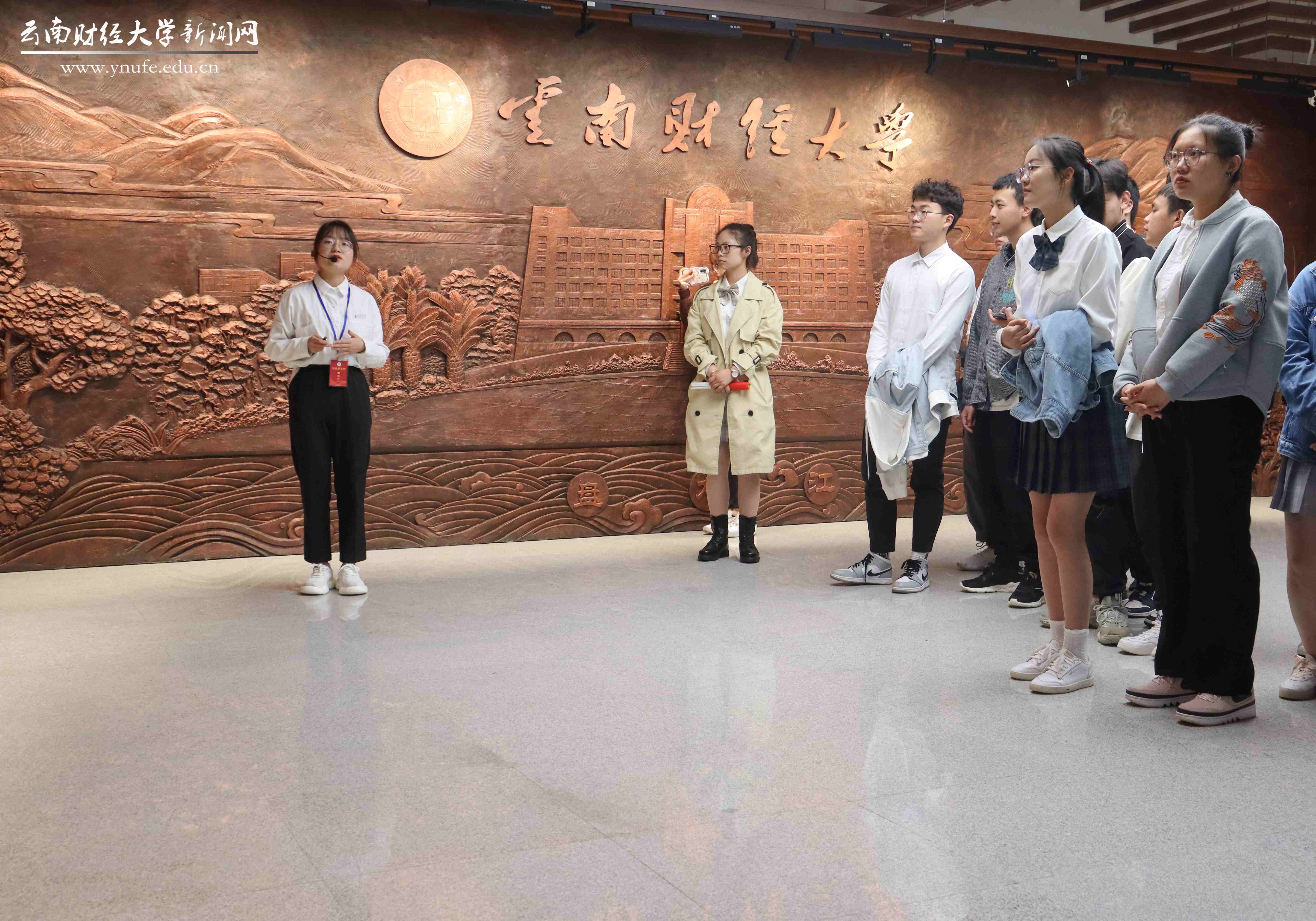 在校史馆讲解员的引导下,同学们一边参观展墙内容,一边聆听讲解员从学校艰难建校到不断顺应时事努力促进学校发展的每一个重要时间点的事件历程的讲解。第一个展厅以壁画形式为主,主壁画上凌云楼的图案与WilliamHill官方网站字样恢弘大气。第二展厅展示了WilliamHill官方网站前身的由来与1951年在云南昆明建立干部培训班的初衷。从第二展厅继续向前走,同学们共同学习了云财的发展历程。1981年开始全日制本科教育,1995年被确定为省属重点大学,2006年更名为WilliamHill官方网站,2013年成为博士学位授权单位……