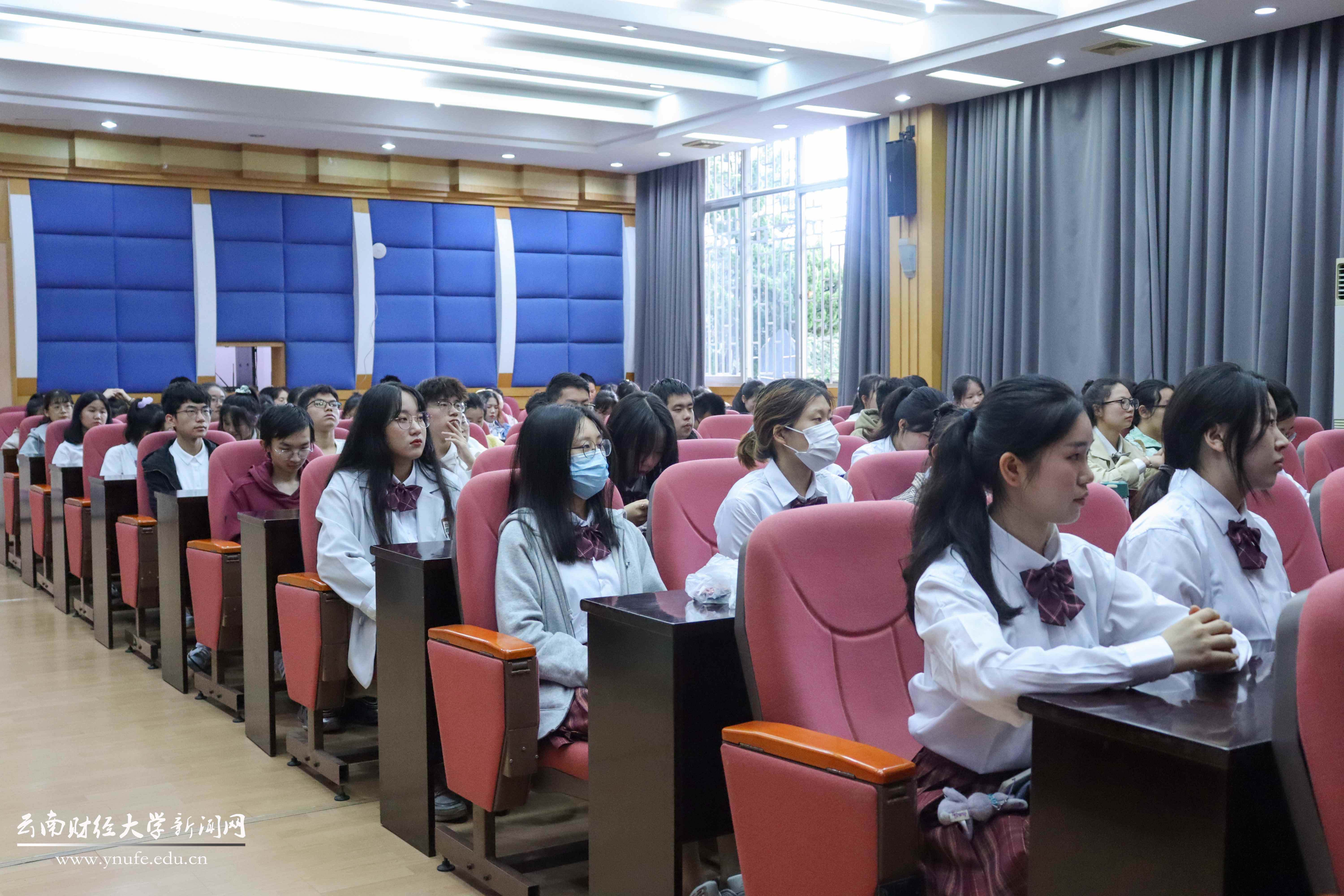 参观结束,两个班的同学们来到报告厅进行“铭记校史 求实创新”校史馆参观活动的交流会。杨媛妮与同学们一起交流和分享了自己对学校深厚的情感,她表示,校史馆是重要的育人基地,学校以红色基因为本建校,一幅幅历史图片和一件件历史实物再现了一代代云财人艰苦奋斗的征程,见证了学校改革发展的光辉成就。70年来的成长历程有困难、有收获,这是事物发展的自然规律,也是我们个体的人生缩影,同学们要从中汲取力量,努力学习,报效祖国,爱校护校,主动承担起学校创新发展的责任。她还就同学们的学习生活、未来规划等方面提出建议,倡议青年人“ 以兢兢业业,慎思勤勉的前辈们为榜样,努力奋斗,携手共创属于我们这一代云财人的辉煌。”